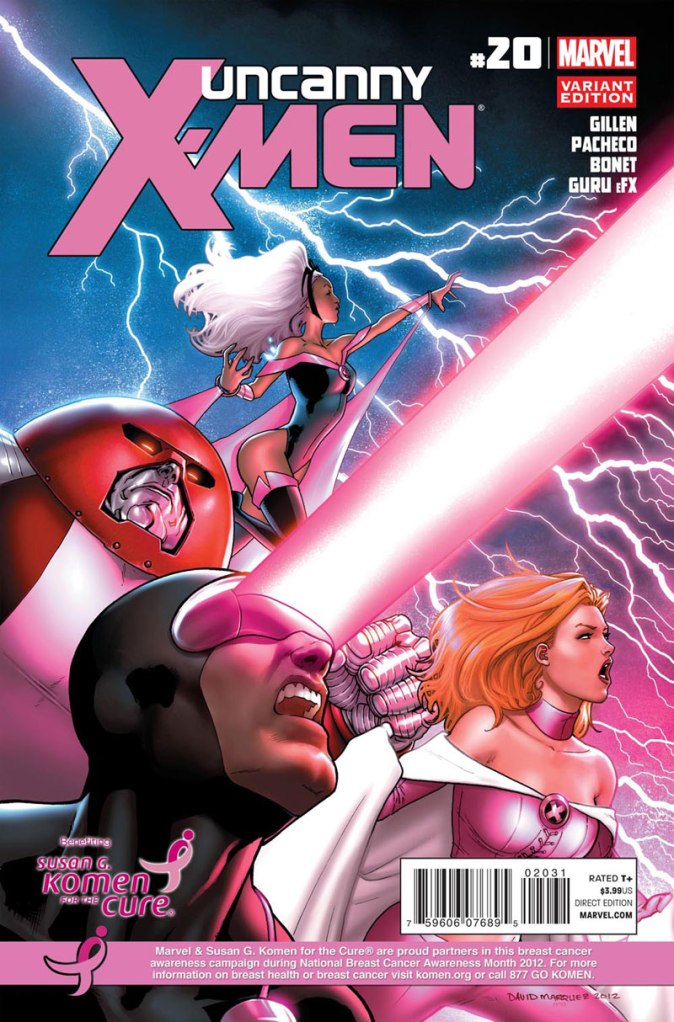 Marvel Comics Breast Cancer Awareness Covers: Week Two October 18, 2012February 14, 2013 / Michael Alexander Henke The second week of Marvel’s Breast Cancer Awareness covers sees three releases featuring Thor, Captain Marvel, and The Uncanny X-Men. Captain Marvel #5 Cover by Joe Quiñones The Mighty Thor #21 Cover by Mike Perkins & Sonia Oback Uncanny X-Men #20 Cover by David Marquez & Chris Sotomayor Please, share this with your friends! Click to share on Facebook (Opens in new window) Facebook Click to share on Tumblr (Opens in new window) Tumblr Click to share on X (Opens in new window) X Click to share on Reddit (Opens in new window) Reddit Click to share on Pinterest (Opens in new window) Pinterest Click to email a link to a friend (Opens in new window) Email Like Loading... Related