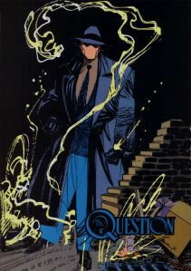 Larry and I went to a friend’s booth to store our items and get into our gear. I dressed as The Question, a DC hero I absolutely love. For those not familiar with him, the character Rorschach from Watchman was based on The Question… only The Question is way cooler. My costume didn’t take long. Larry’s however, was a project unto itself. He dressed as Mr. Freeze. In order to keep the fishbowl helmet from fogging, Larry installed three cooling fans. Blue LED lighting provided the atmosphere. Oh, and a voice modulator was also installed for pure awesomeness. All batteries were also installed into the helmet. We painted his chrome dome white and he put on the signature red goggles. Of course, once a person wears red goggles under blue lights, things become much darker. How come they never discussed this in the comics? Of course, The Question wears a mask to cover his entire face, eyes included, so I’m not one to talk. Anyway, Mr. Freeze finished his ensemble with a freeze gun that shoots fake liquid nitrogen. Here’s a quick vid: