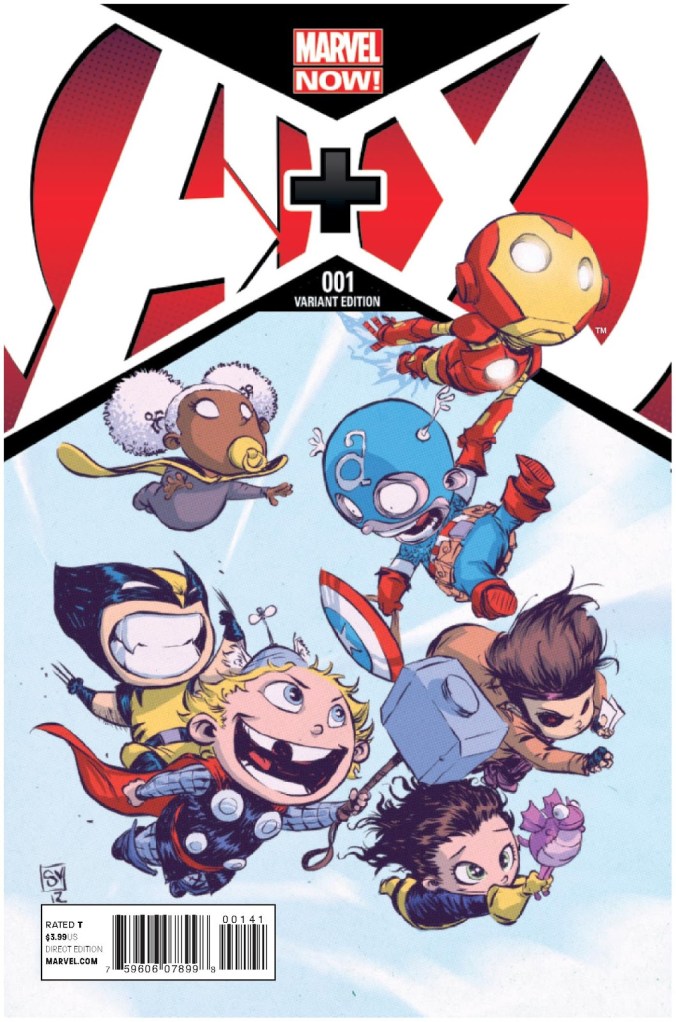 Avengers vs. X-Men brought us the A vs. X mini series, which was basically just an excuse to have heroes fight each other. Now that the storyline has been completed we get A + X, which is basically just an excuse to have heroes team up. As far as I can tell every new Marvel Now! book has a Skottie Young Babies variant, and you can be pretty sure you’ll see them all.