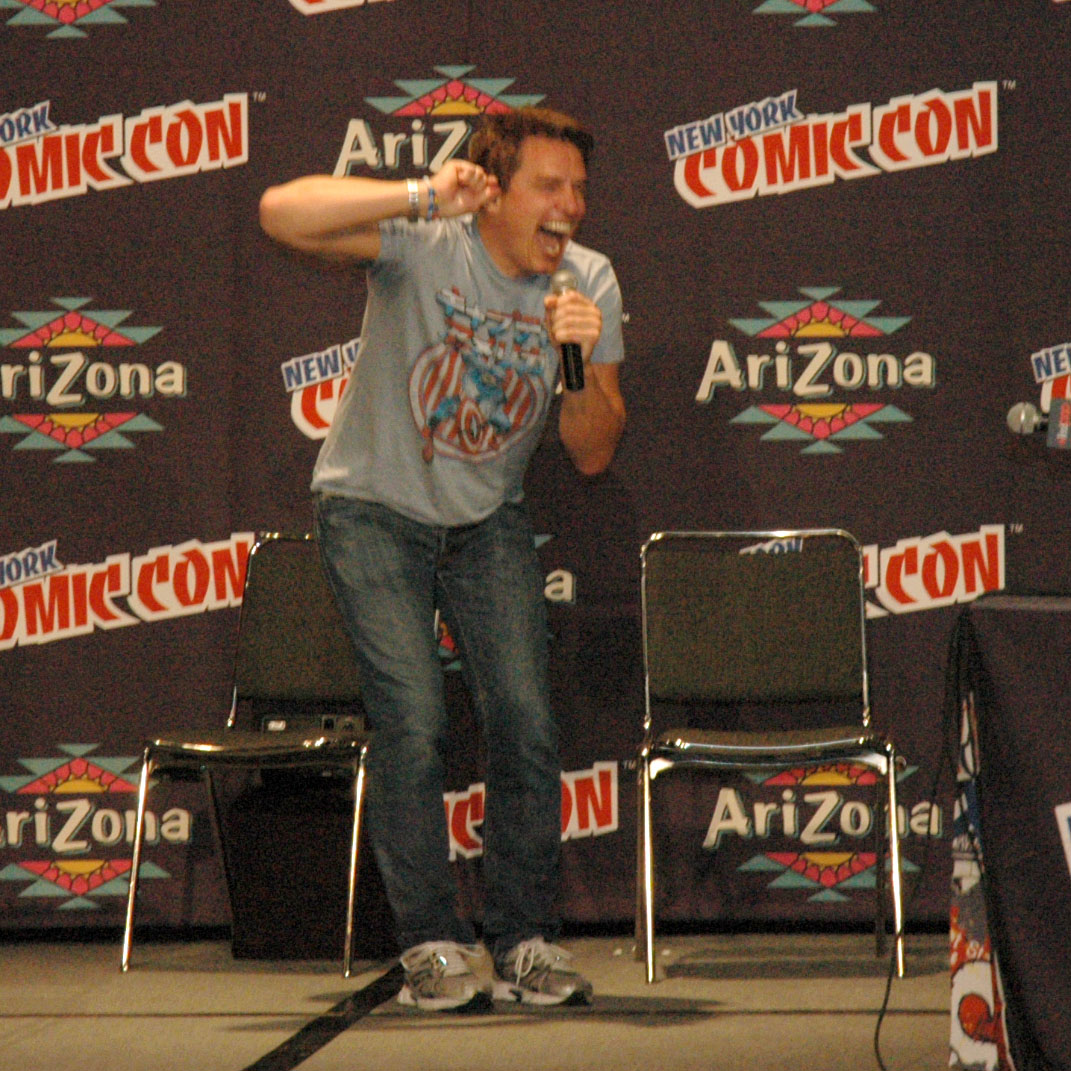 Anyways, the panel begins, and it’s 5:15pm. Odd, I thought. A group of people walked onto the stage and took their seats, then begin introducing themselves. I wondered if I went to the wrong room, but then I checked my phone and saw that before Barrowman, there was a DC Panel “The New 52” taking place in the same room. Well, I suppose sitting in a seat and watching a random panel is a lot more interesting than sitting in line on the floor and draining my phone battery checking facebook or texting people. Okay, so I was wrong. Let me just start off by saying, I have nothing against DC or the comics. I am new to the comic book world, and I’ve even read a bit of “Birds of Prey” which I enjoy. However, I’ve never seen a more bored and uninterested group of people in one room. I’m almost positive I’ve been more entertained watching a student made slide show. The writers and artists were showing sneak peaks of some of the new issues to come, and what to expect without spoiling anything. While the artwork was nice to look at, they seemed entirely unenthused. Even (clearly rehearsed) jokes didn’t get so much as a chuckle, and it was easy to tell that the host was not amused at the silence. The room was mixed with John Barrowman fans, and DC fans. Once the host announced the panel was done, and they would be taking questions, about 20-30% of the people got up to leave. This includes some of the people towards the front. People are leaving? Seats are opening? I shot out of my seat and darted up towards the front to grab the closest seats I could find. Now I was about 5-10 rows back and no big poles blocking my view! Perfect.