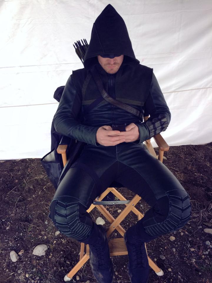 I woke up this morning only to find out that Stephen Amell, who plays Oliver Queen (The Arrow) in CW’s hit TV show Arrow got a hold of my picture that I decided to throw together in photoshop on a whim last night after Stephen had posted a picture of himself in full costume on his phone.