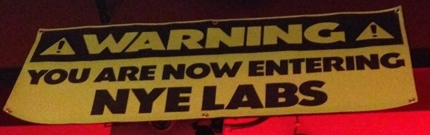 When we finally made our way in the building, the staff inside (which I’m not sure if they worked for Bill Nye, Live Nation, or Irving Plaza) were all wearing lab coats! They were very friendly as well, and handed out yellow cards to anyone interested in asking Mr. Nye a question. The halls and stairs were appropriately decorated with bow ties (on the mirrors), and ‘You Are Now Entering NYE LABS’ signs. Already an exciting experience before the show even started!