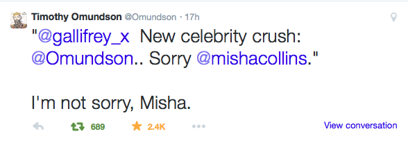 “Newest celebrity crush: @Omundson…sorry @mishacollins”