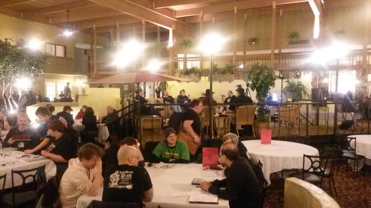 I planned to attend Friday and Saturday (it ran from Thursday to Sunday). I had an early morning engagement on Sunday so I was planning on hanging around until about 8pm on Sat. Unfortunately, I saw on the schedule that my favorite RPG of all time, Cyberpunk 2020, was being held at 7 and would last for four hours. I figured that I would just peek in for about an hour before leaving. Then I noticed who was GM’ing… none other than Mike Pondsmith, the creator of Cyberpunk 2020.