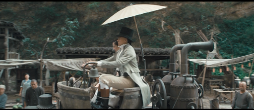 The movie tries to have some fun in a steampunky, video game-esque style. For instance, identifying the actual famous people during the movie while introducing their characters; also, during Yang Lu-chans attempt to gain entry into the village, he must fight his way past the defenders, each one treating us to a Street Fighter style marquee such as, “Round 1!”. The fighting is quite good and well choreographed by the seasoned Sammo Hung.
